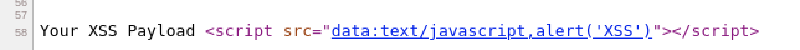 Therefore, the “data:” scheme tries to load an external script, which was blocked by the CSP policy, and the alert('XSS') payload doesn’t execute.