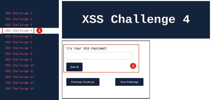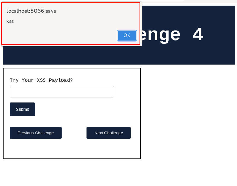 After setting up the lab, visit http://localhost:8066 and ensure it’s accessible, then navigate to “XSS Challenge 4”.