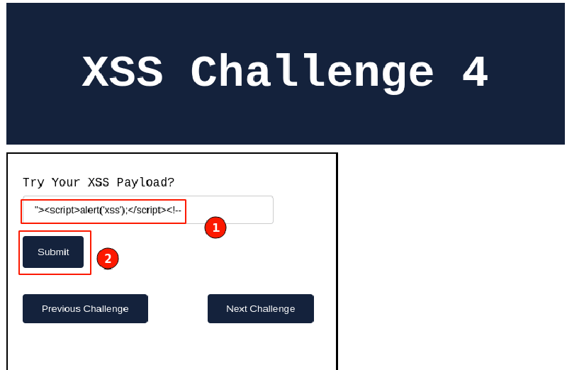 By this, we have successfully exploited the cross-site scripting vulnerability challenge 4.