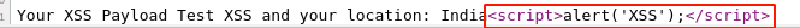 In a similar way, this time in the “location” param value append our classic XSS payload, which will be displayed as shown below.