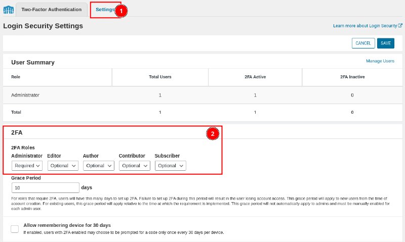 Admin Login: Enable Two-Factor Authentication #
