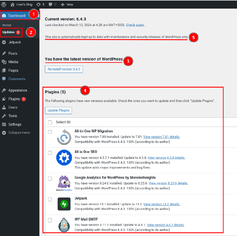 - Currently, our WordPress Core is already updated, and the latest version is present on the server, i.e., Version 6.4.3.