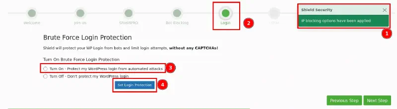 Make sure to “Turn On - Protect my WordPress login from automated attacks”, click on “Set Login Protection”.