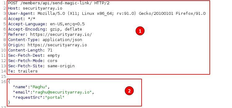 POST /members/api/send-magic-link/ HTTP/2In the above line, the first one POST is called a verb. It's one of the HTTP methods commonly used for posting data onto the server.