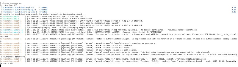 Additionally, to completely remove the “Kurukshetra” containers running from your system, run the remove command from the same directory where the docker-compose.yml file is present.